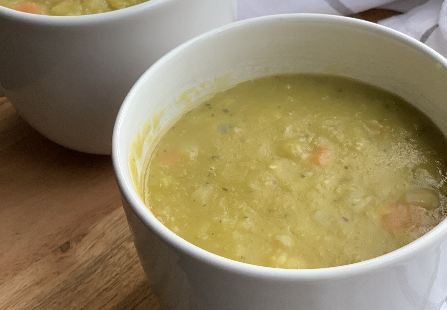 - Laat dit met deksel op de pan zachtjes doorkoken totdat de spliterwten gaar zijn en uit elkaar vallen. Dit duurt ongeveer 1 à 2 uur. Af en toe doorroeren.