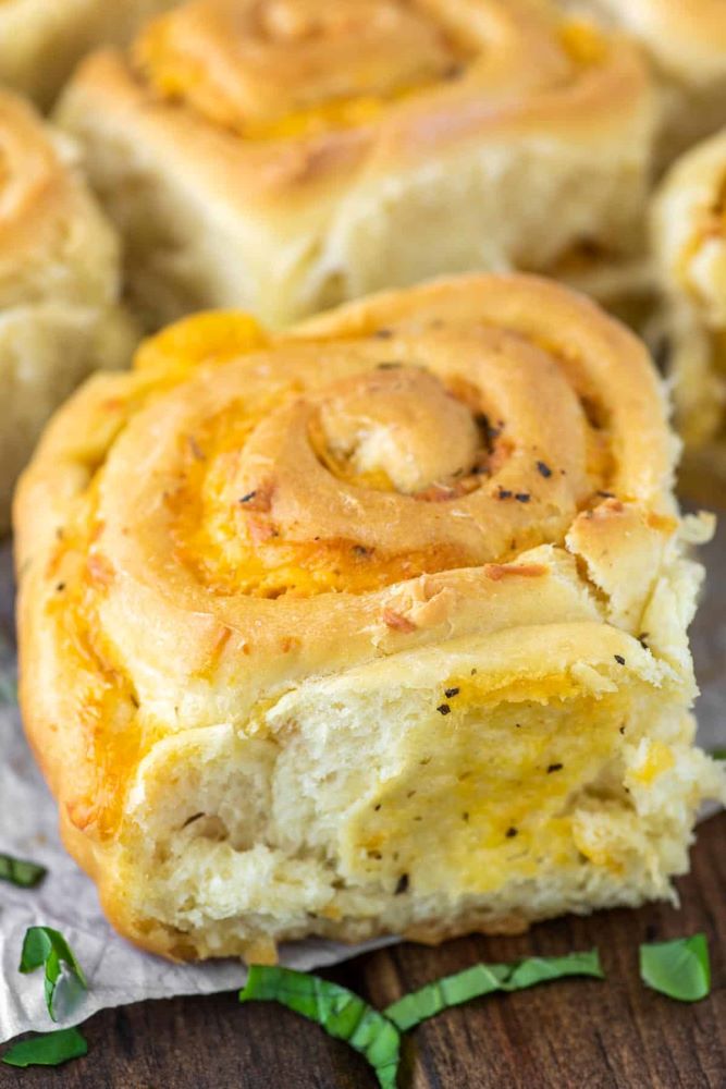 Je kunt het deeg na het oprollen ook in kleine rolletjes snijden en in een ronde of vierkante ovenschaal tegen elkaar leggen.