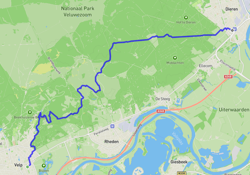 Wandelroute NS-wandeling Veluwezoom 15 kilometer 10 maart 2024 NS-wandeling Station Dieren Bekijk op kaart Naar routebeschrijving GPX downloaden