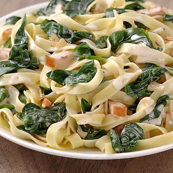 Tagliatelle met tuinkruiden, gerookte kip en rucola